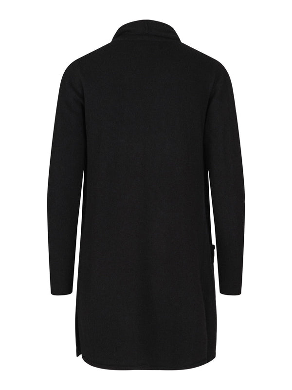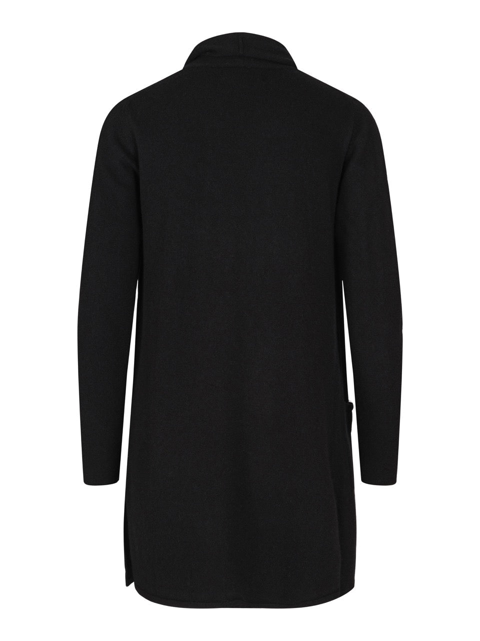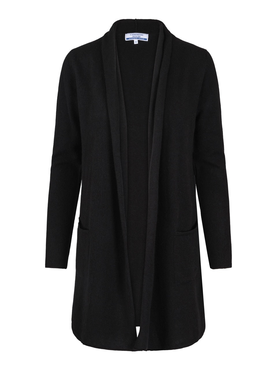 This elegant, mid-length cashmere cardigan in black is a timeless addition to any wardrobe. Made from 100% Mongolian cashmere, it offers luxurious comfort and style suitable for all seasons. Featuring convenient pockets and stylish side slits, this cashmere cardigan is ideal for both everyday wear and special occasions. Discover a cardigan that combines functionality with timeless elegance!