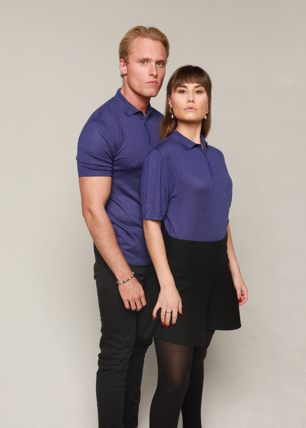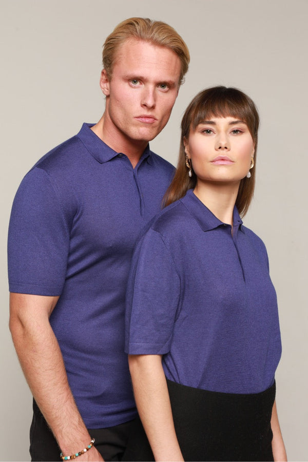 Polo in cashmere and silk blend, navy blue