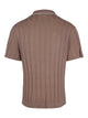 Vertikale strikkestrukturer gir plagget en visuelt slankende effekt og et raffinert uttrykk, mens den kontrastfargede kragen og knappestolpen tilfører et sporty, men sofistikert preg. Ermene og kanten nede er også avsluttet med kontrastbånd som fullfører det helhetlige designet.