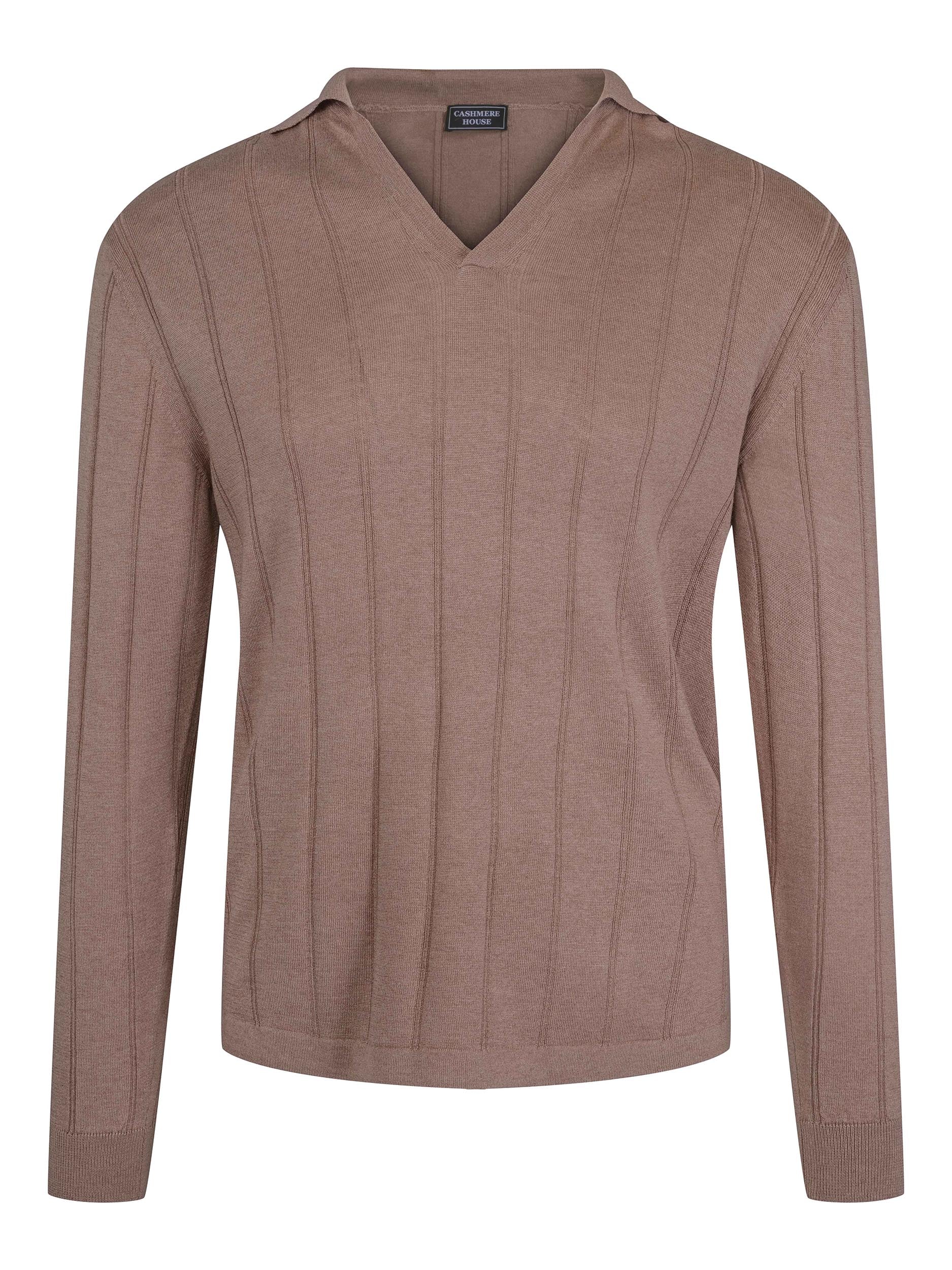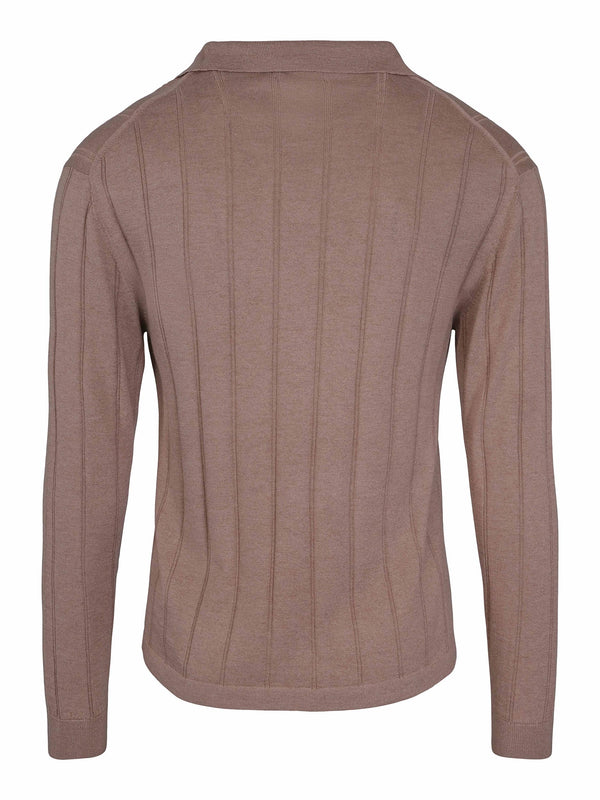 En moderne klassiker for den bevisste mannen: Denne langermede genseren kombinerer det tidløse uttrykket til en poloskjorte med luksusen fra en eksklusiv cashmere-silke-blanding. Den har en strukturert, kontrastfarget ribbekrage som gir karakter og definisjon, og avsluttes med ribbestrikkede mansjetter og linning for en sofistikert finish.