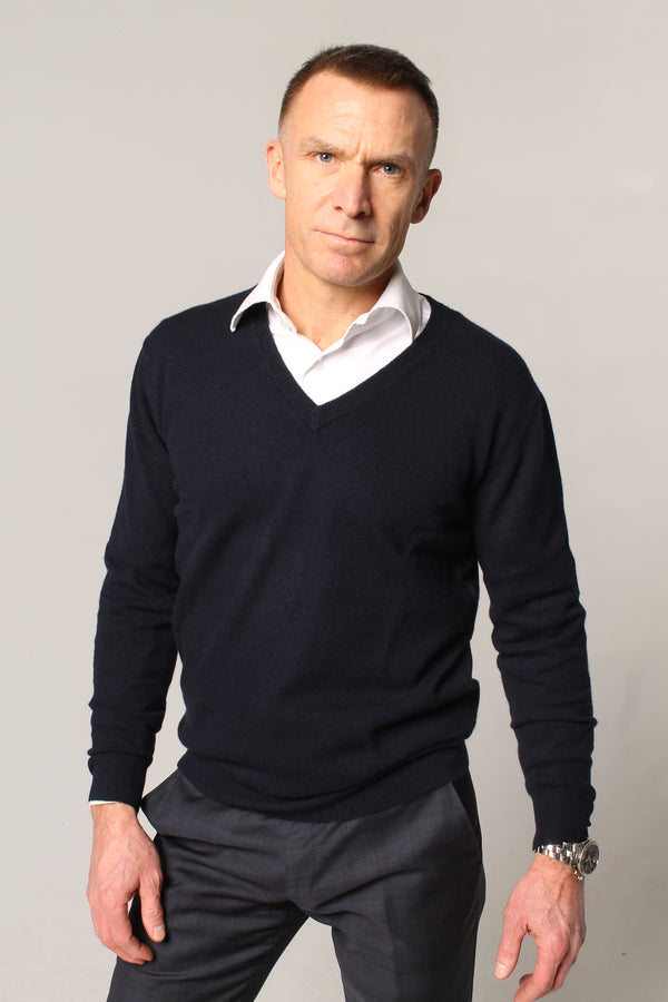 Discover a premium cashmere V-neck sweater, made from 100% Mongolian cashmere. This sweater is knitted in 12 gauge (mesh width) with 2 ply and hard-spun yarn, giving it an unparalleled combination of durability, softness and warmth.
