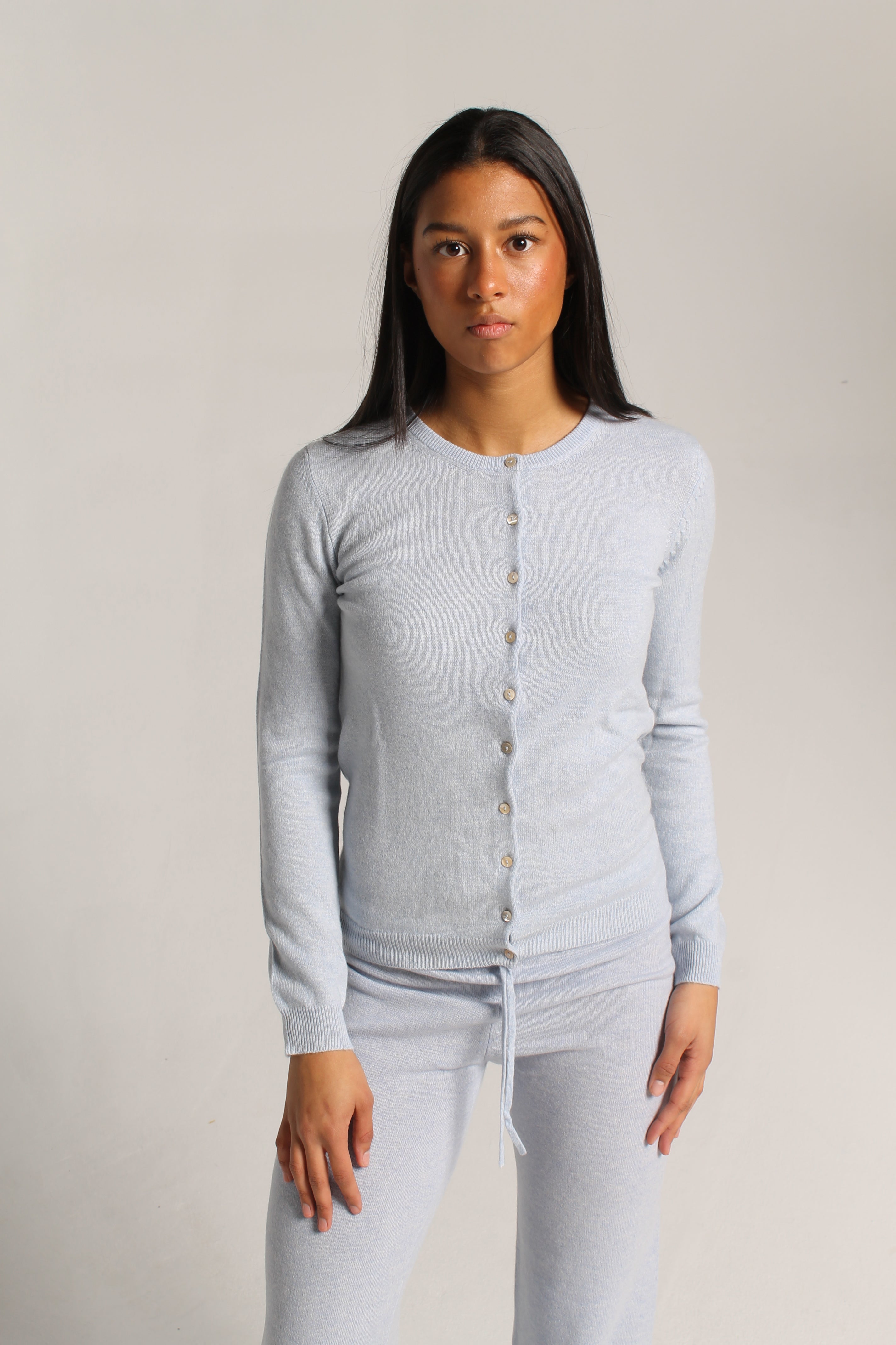Classic cashmere cardigan blue mist