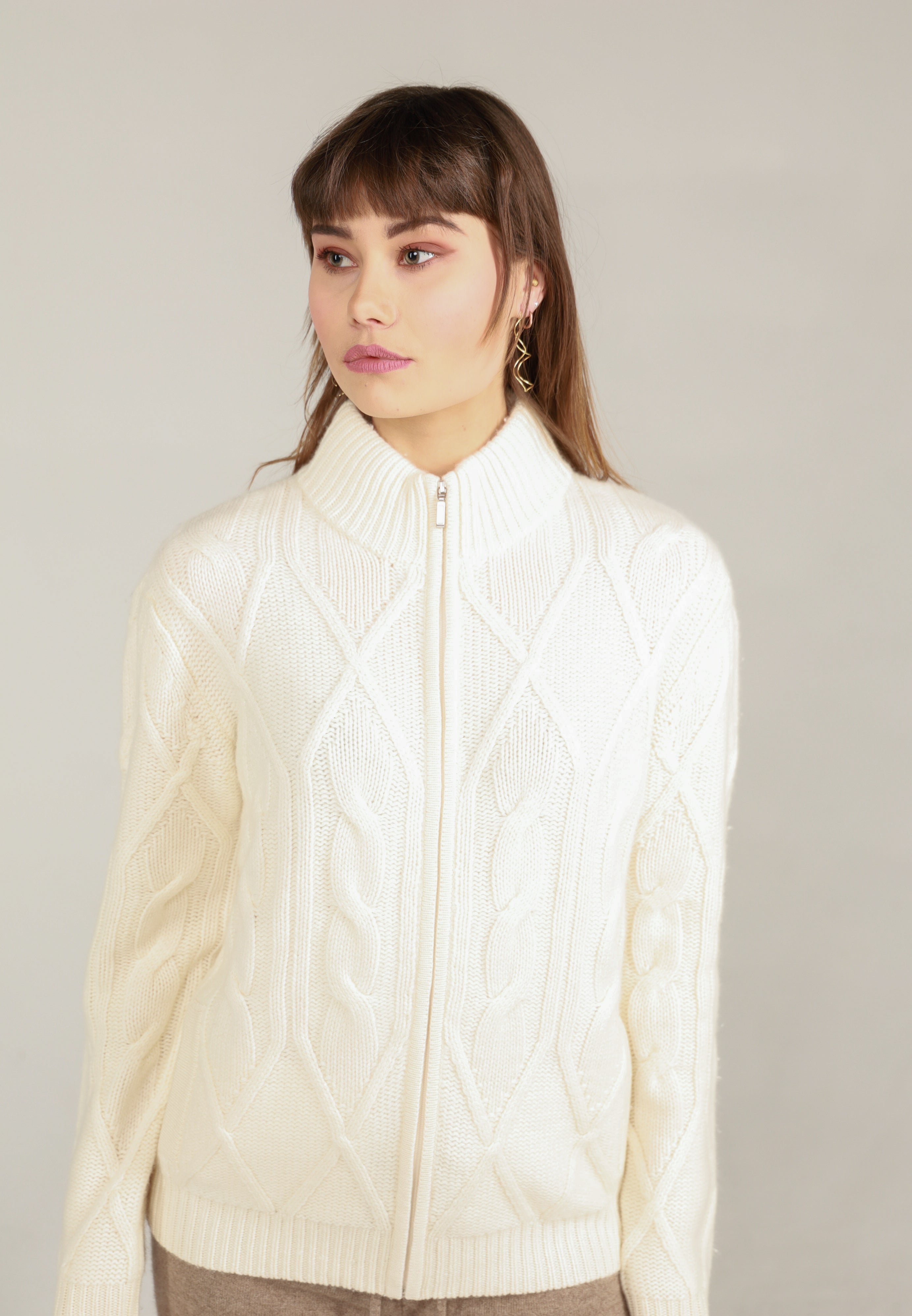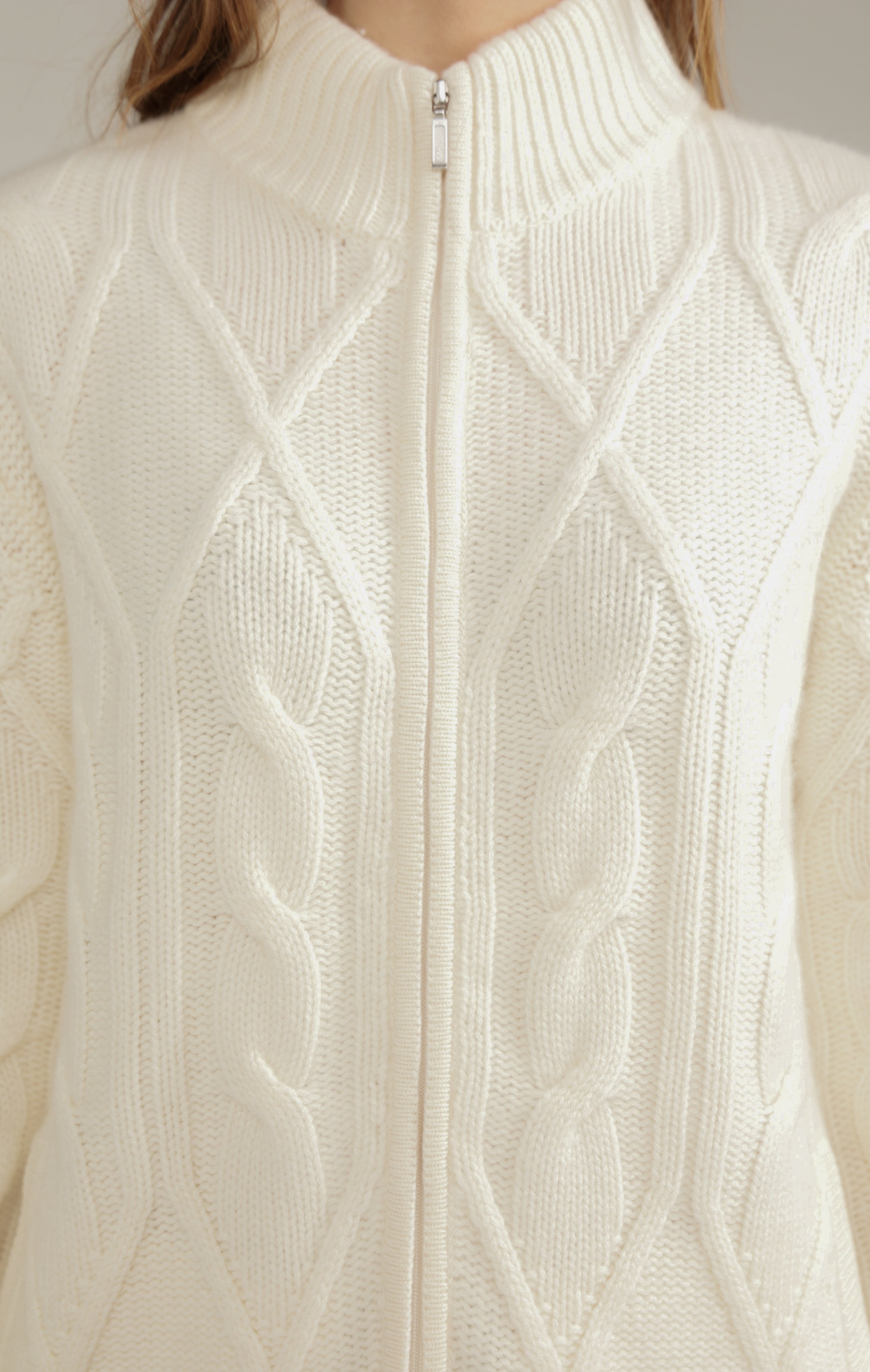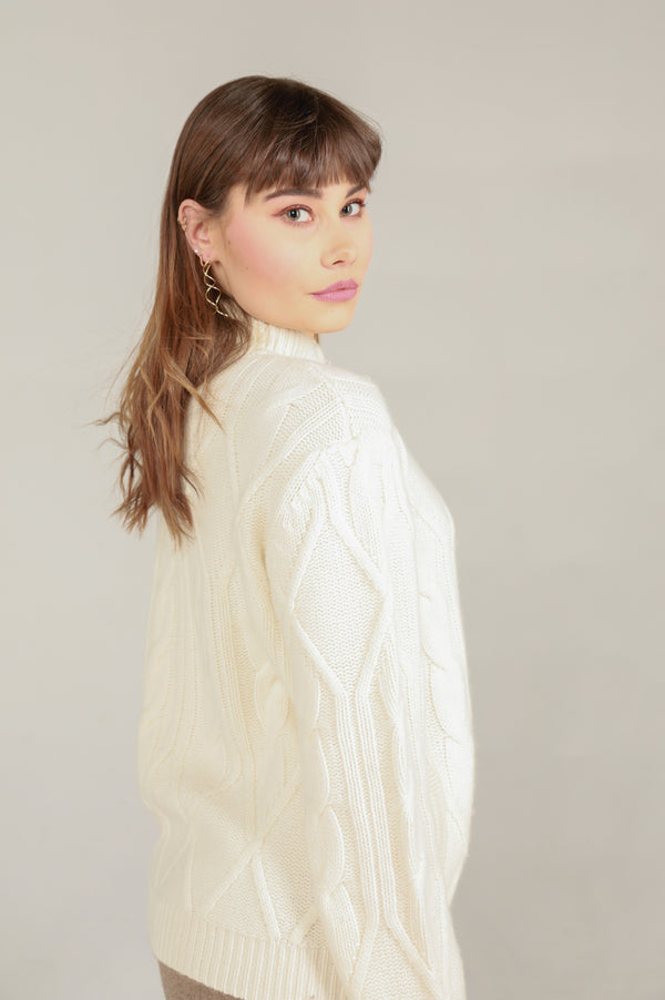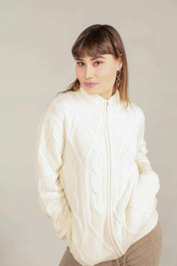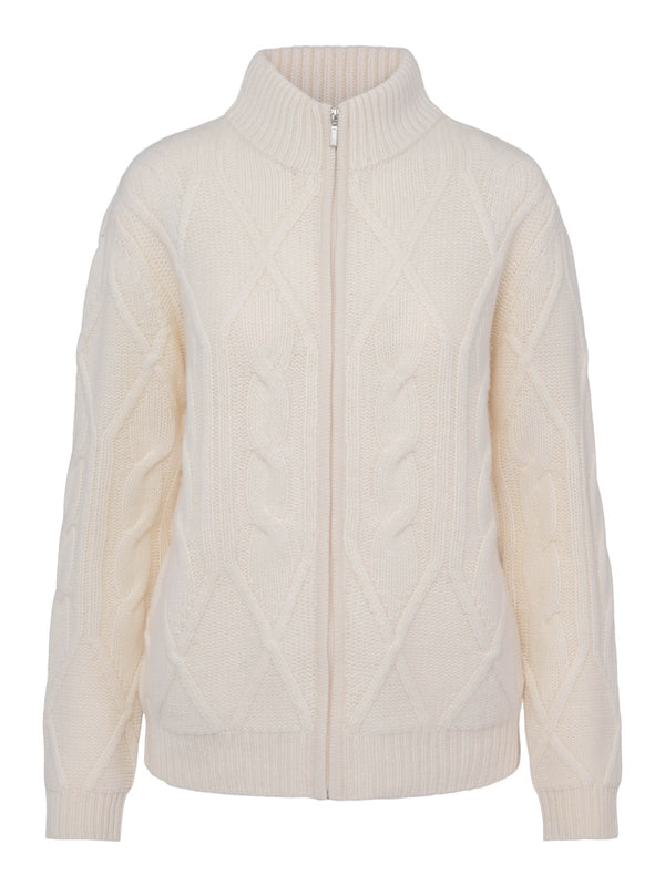 Thick braided cashmere jacket white