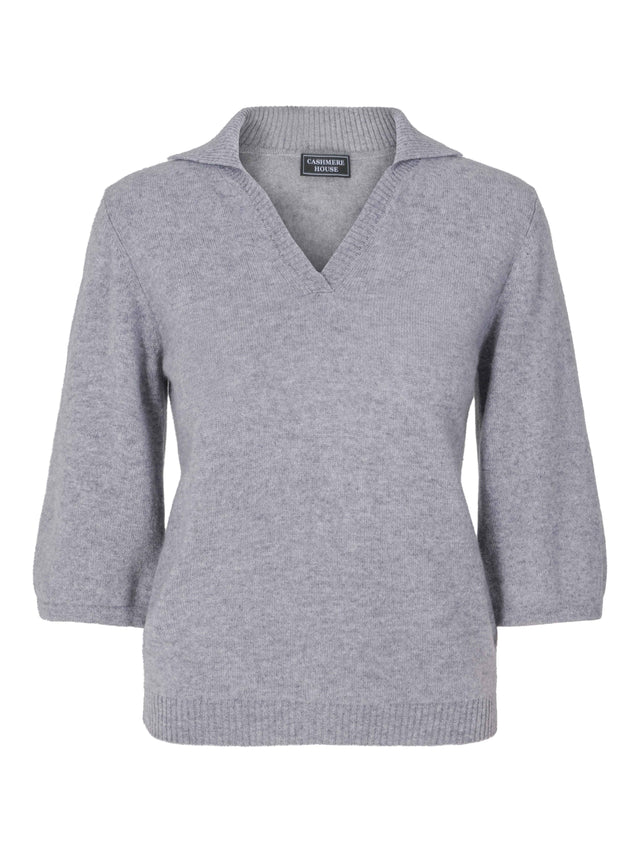 Short-sleeved light gray cashmere polo v-neck