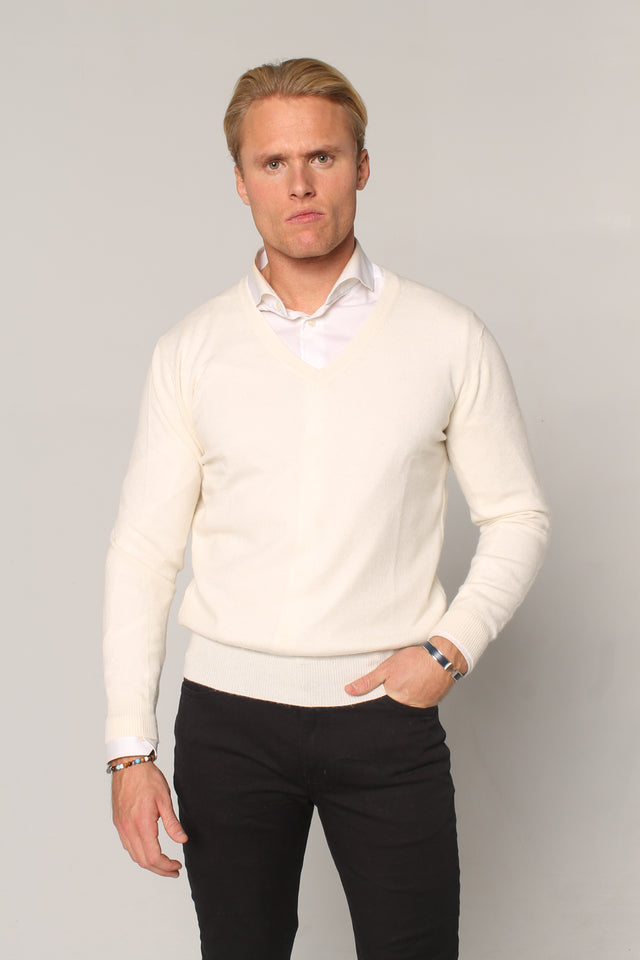 V-neck cashmere sweater white