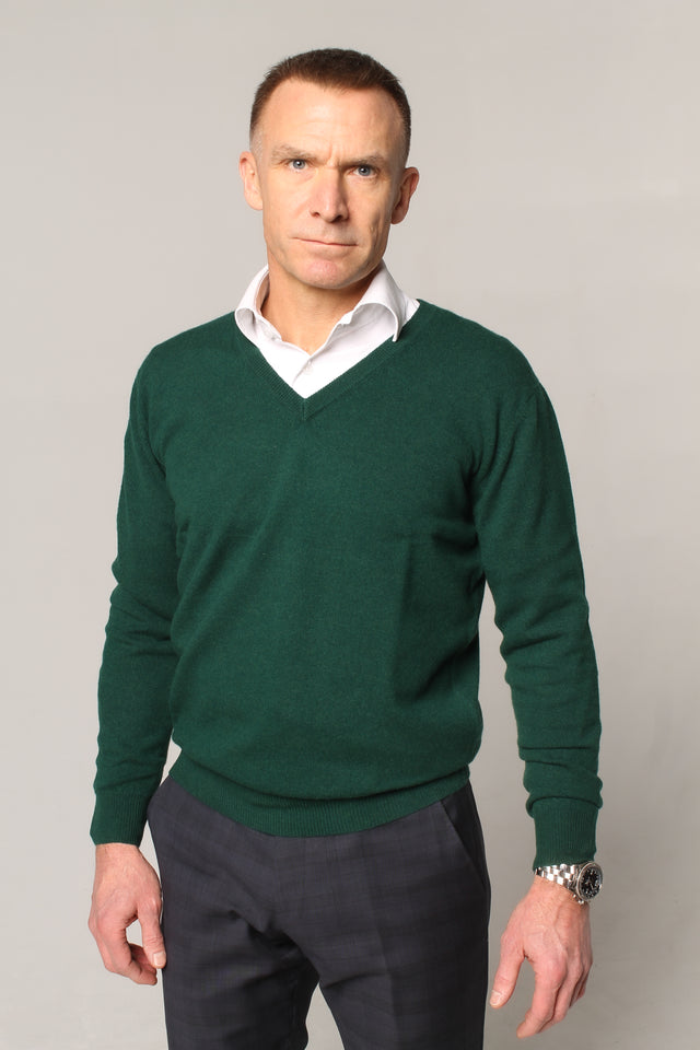 V-neck cashmere sweater forest
