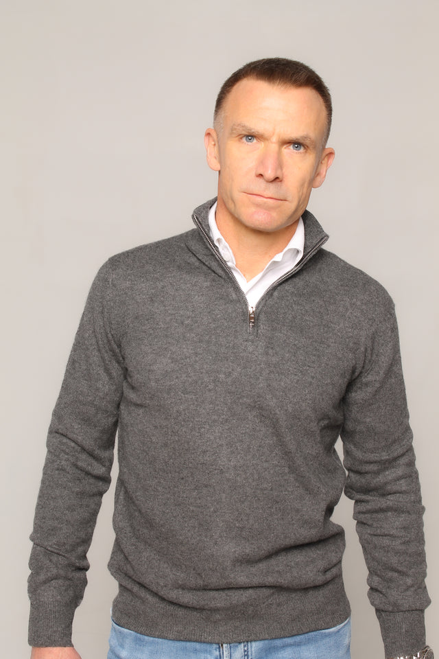 Cashmere sweater with zip charcoal grey