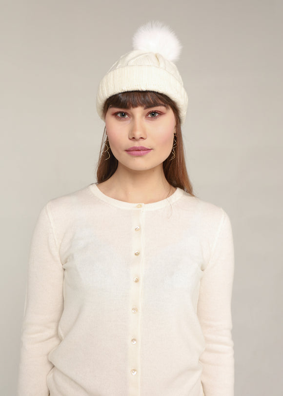 Thick cashmere hat white with tassel